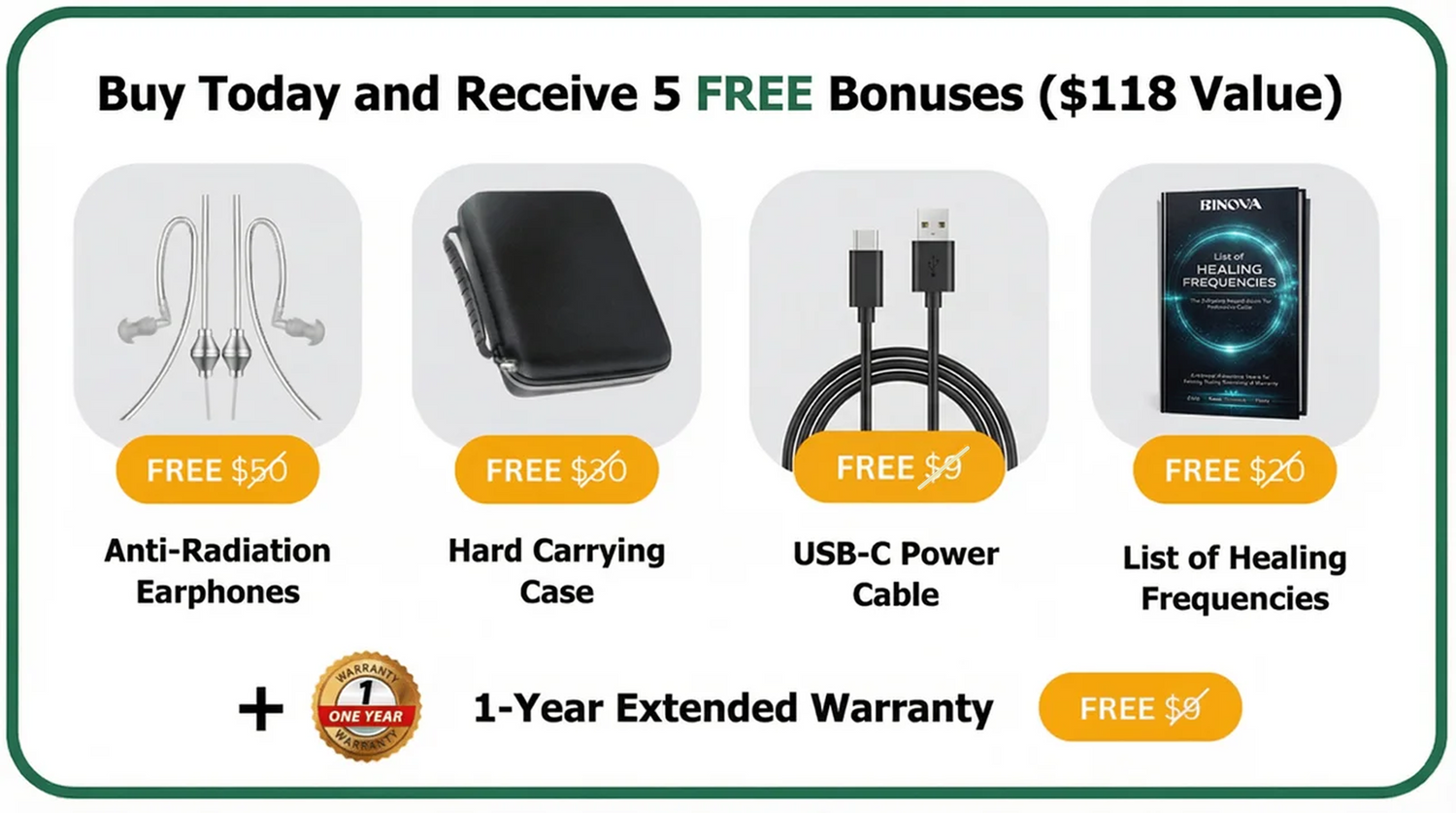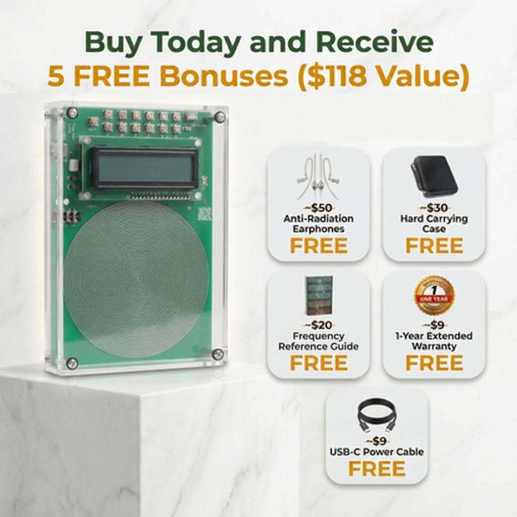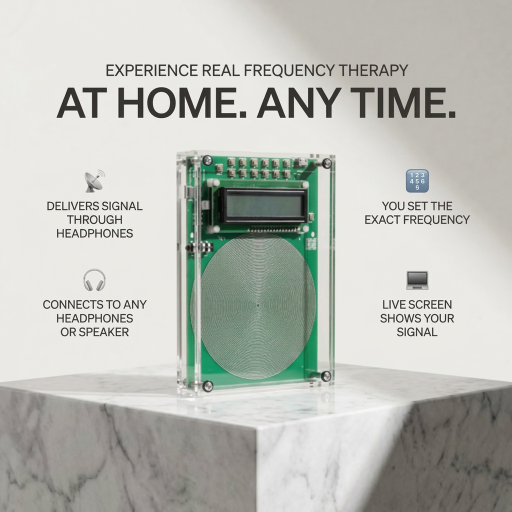The device generates specific frequencies through Electromagnetic Frequency Technology (EFT)or sound (when connected to audio equipment). We recommend our complete kit, which includes everything you need: the generator unit, necessary cables, anti-radiation earphones and a protective case. Of course no additional purchases required.