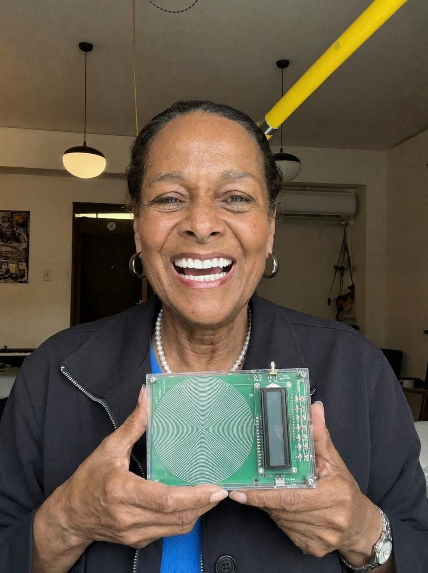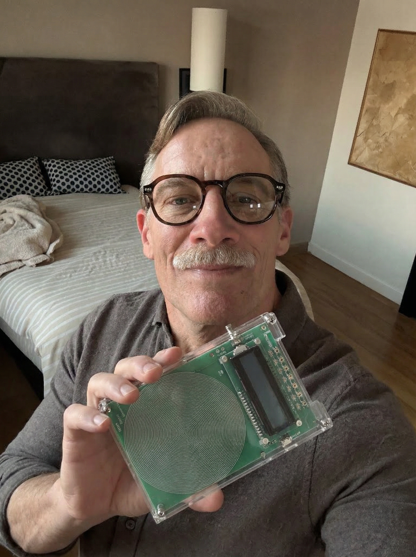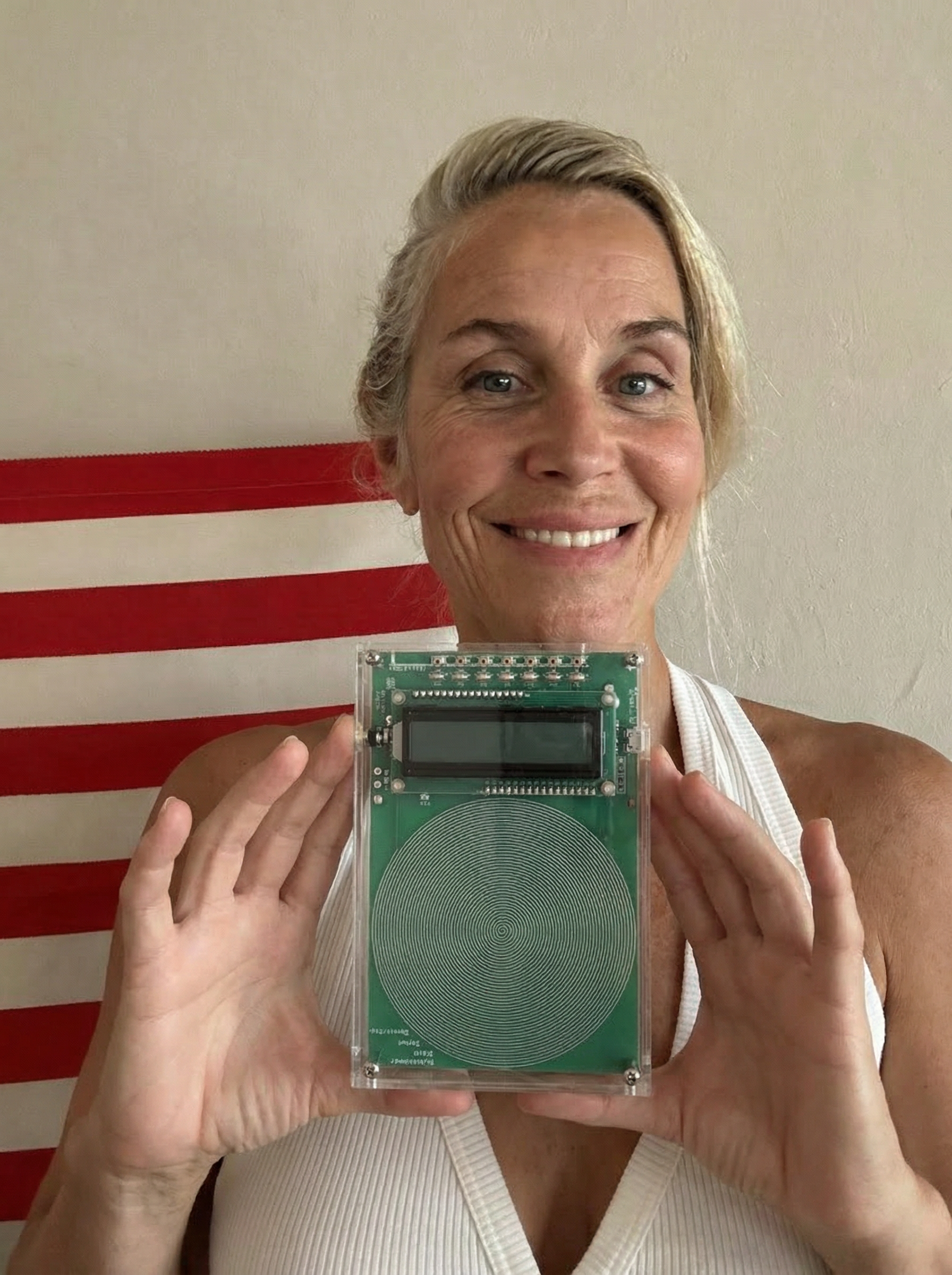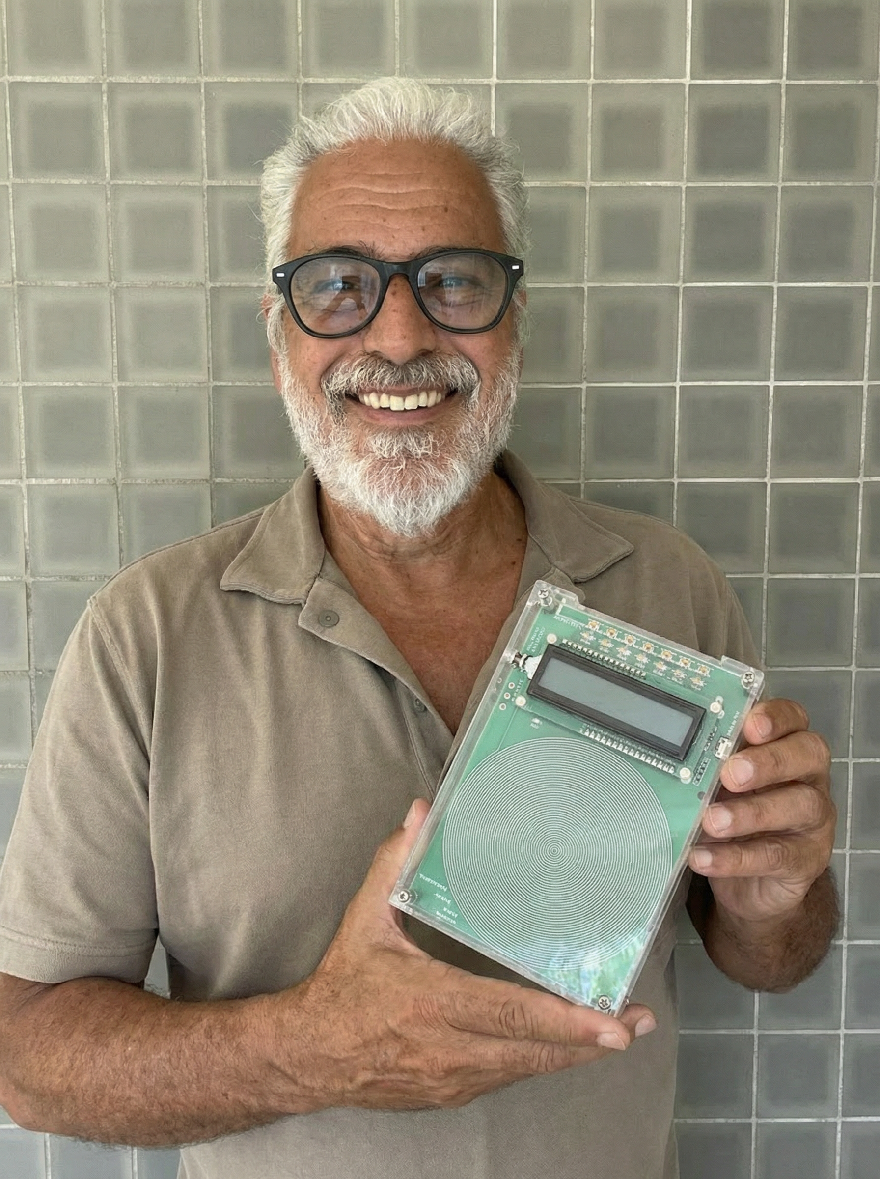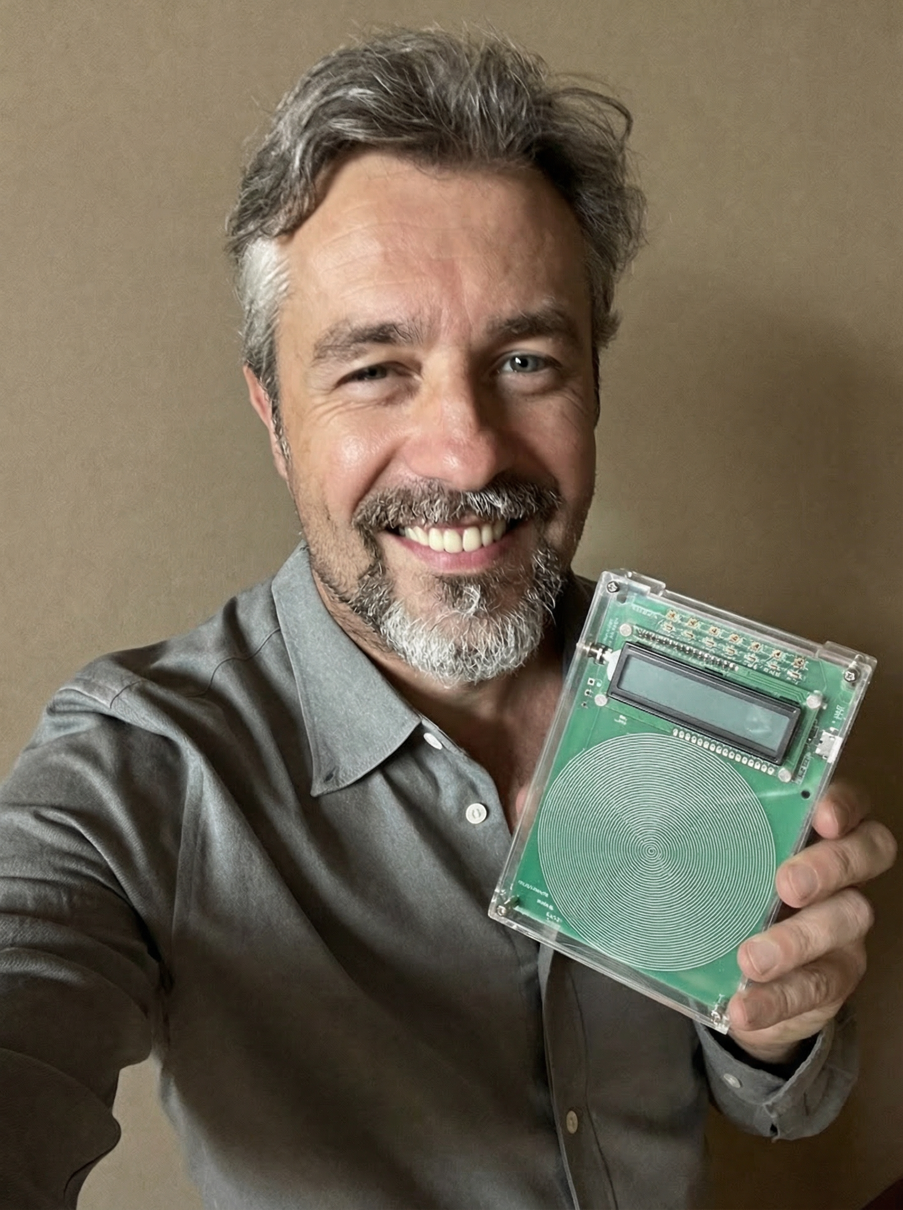 The device works in two ways: it creates an energy field that works silently, and it also makes sound frequencies you can hear through speakers or headphones.