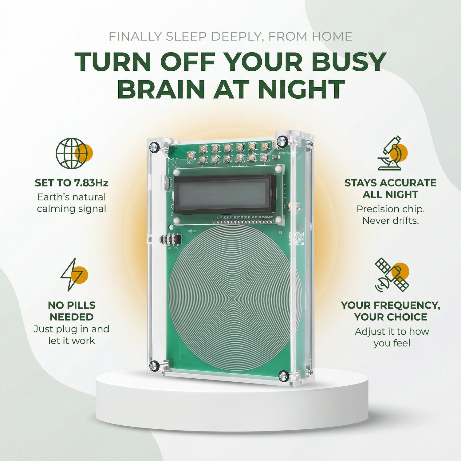 The only device that delivers Earth's natural 7.83Hz calming signal directly to your auditory cortex — so your nervous system finally stops running on emergency mode.